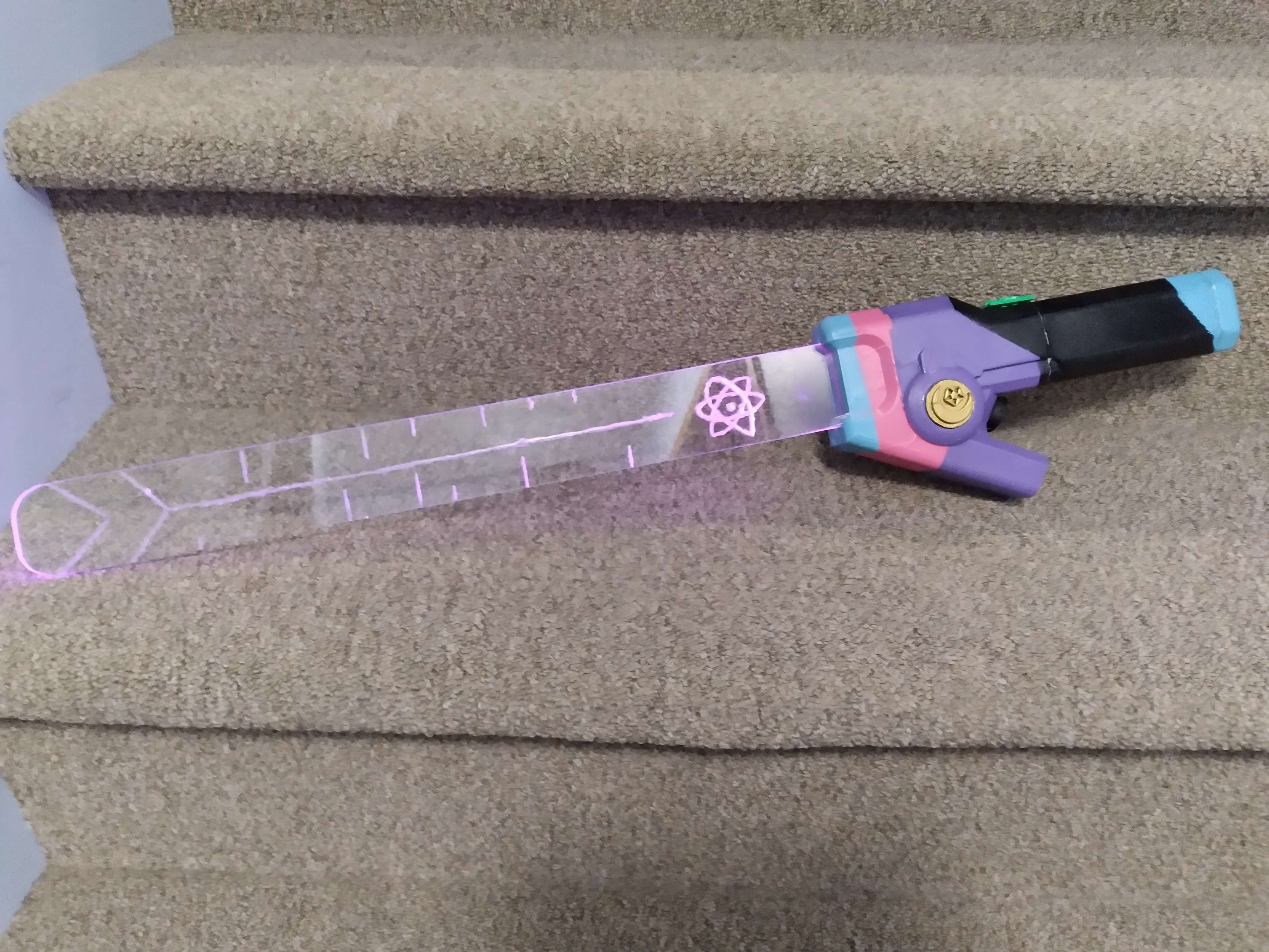 This light sword is based off of the Zedd Sword from the video game Valorant. It features LEDs that can change colors to make the blade appear as if its made of light. The gold moon knob on the sword is used to change the color of the blade. This project was built for my grade 8 capstone assignment which represents aspects of Science, Technology, Engineering, Art, and Math.